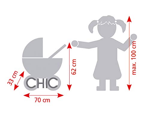 mit höhenverstellbarem Schiebegriff von ca. 33 bis 62 cm für die jüngsten Puppenmuttis, stabile Ausführung, mit klappbarem Verdeck, Anschnallgurt und Gepäcknetz. Für Puppen bis ca. 52 cm.