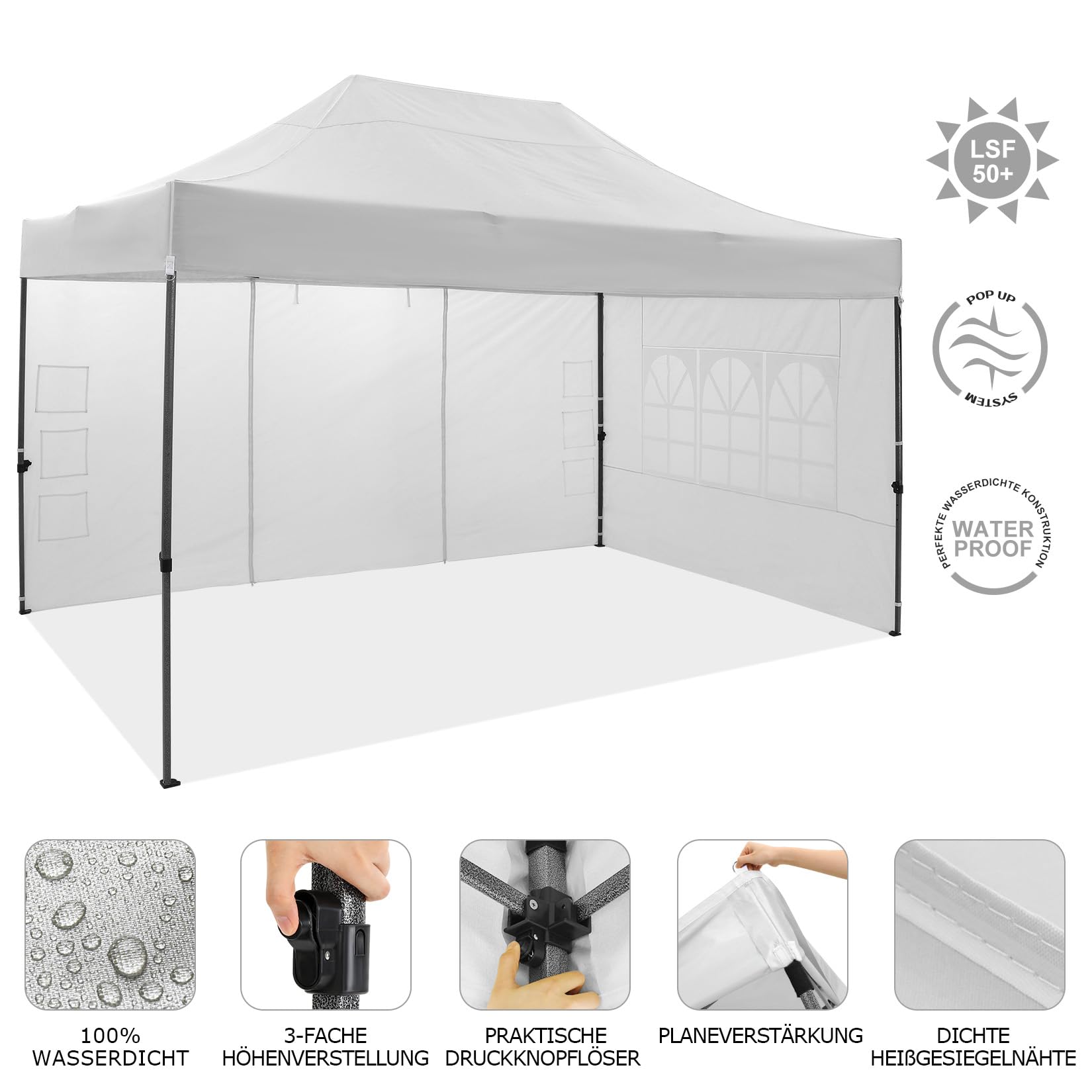 - ⛺ MEHRERE VERWENDUNGSGELEGENHEITEN - Inkl.4 abnehmbare Seitenwänden, um Ihrer verschiedenen praktischen Zweck zu erfüllen. Mit einer Fläche von 13,5 m² bietet der Faltpavillon Platz für bis zu 27 stehende und rund 24 sitzende Personen. Perfekt für Messen, Markt, Partys, Festival oder alle Outdoor-Aktivitäten.