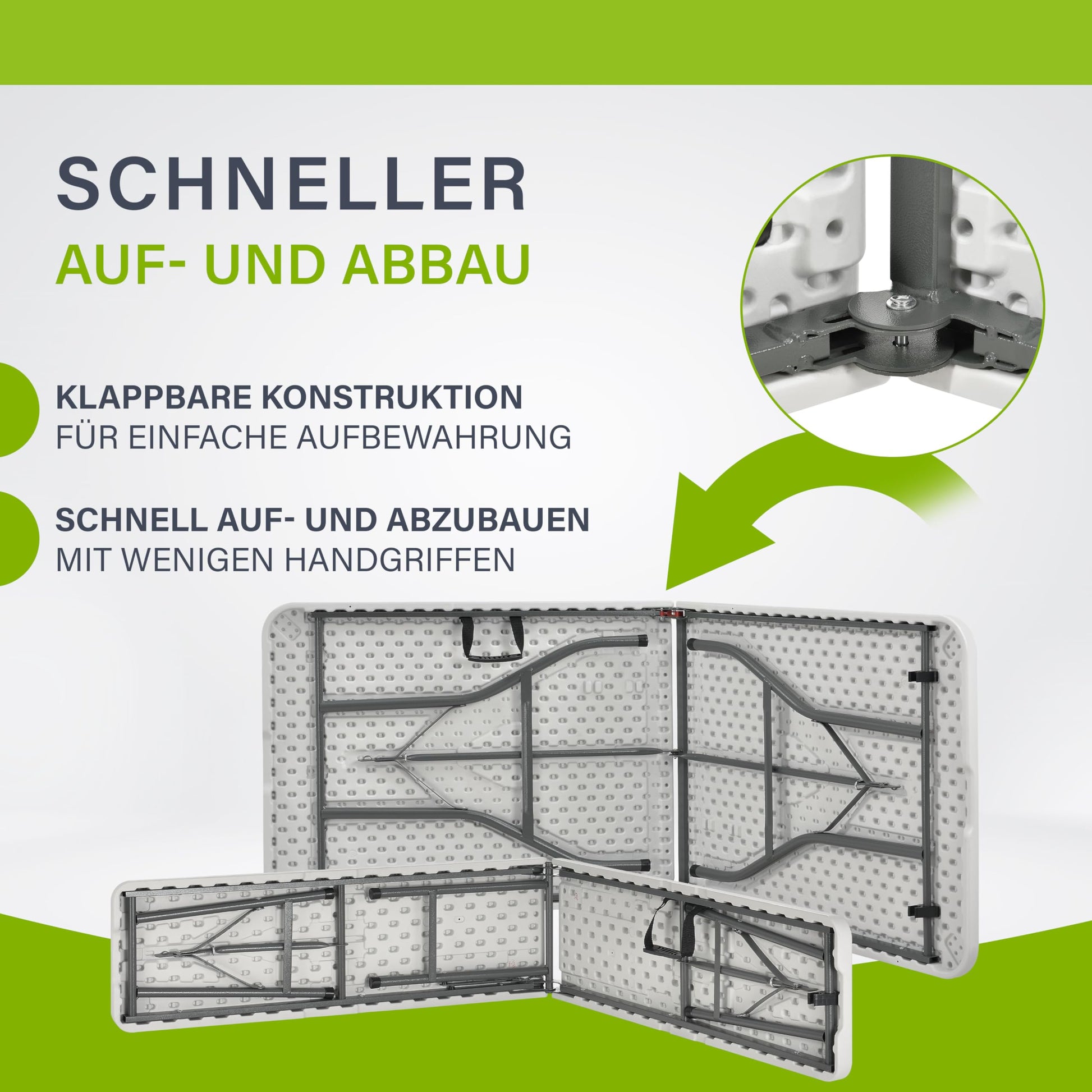 - ✅ Klappbar & transportabel: Tisch und Bänke schnell zusammenklappbar; seitliche Tragegriffe, Kofferfunktion und das geringe Gewicht für leichten Transport; bequem im Kofferraum verstaubar