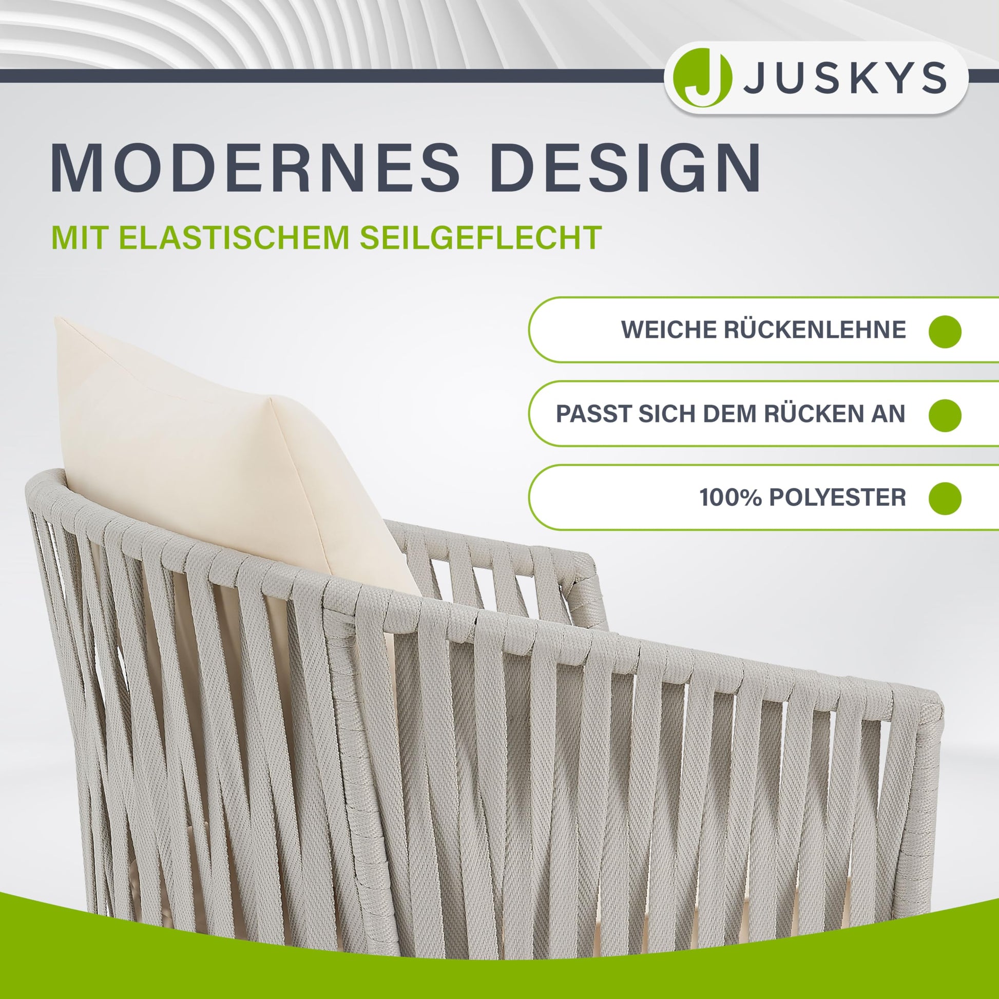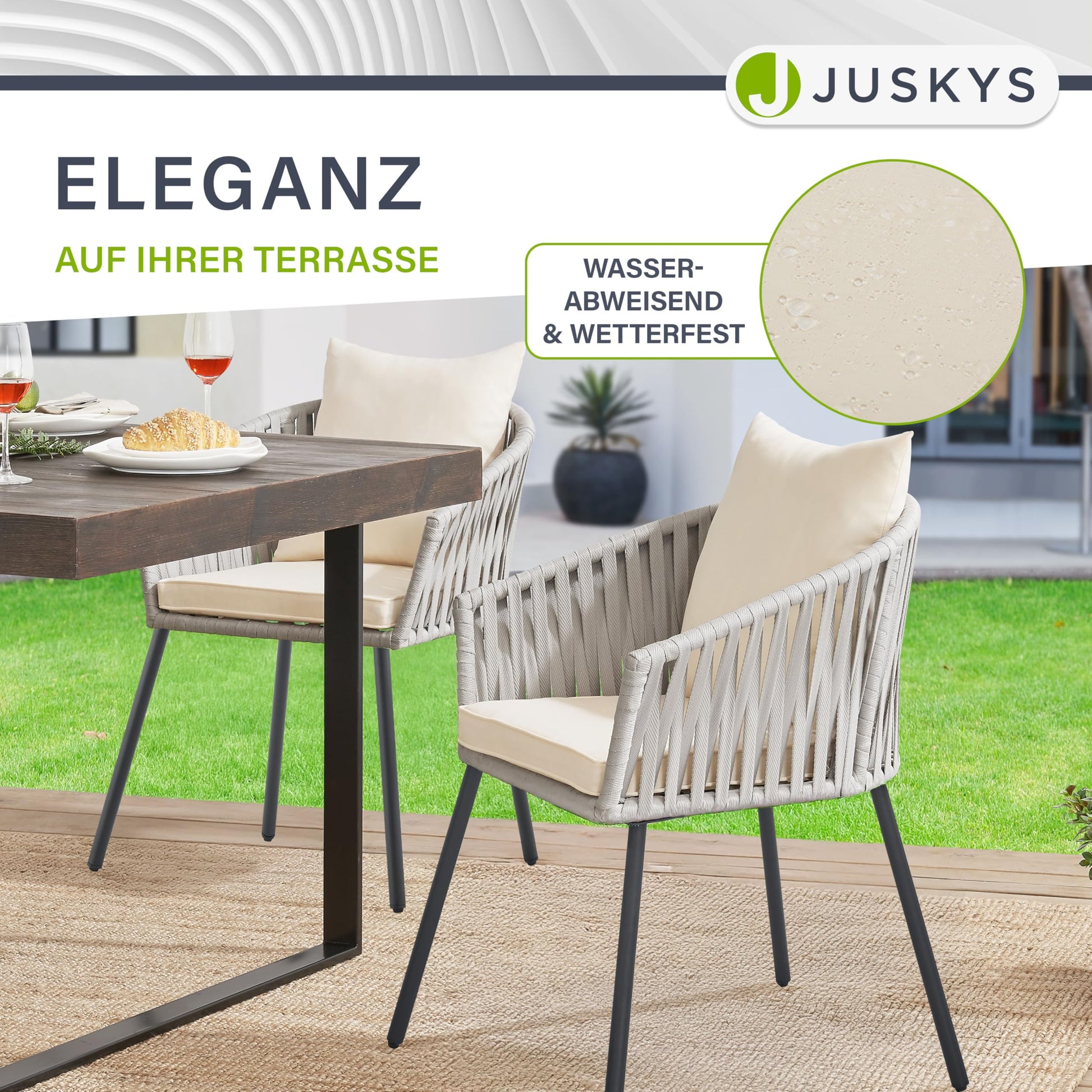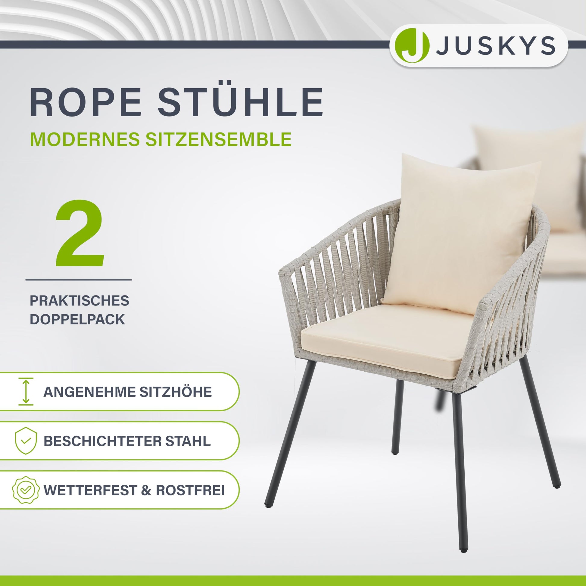 Juskys Rope Gartenstühle, 2er Set, wetterfest, bis 160 kg, Hellgrau.