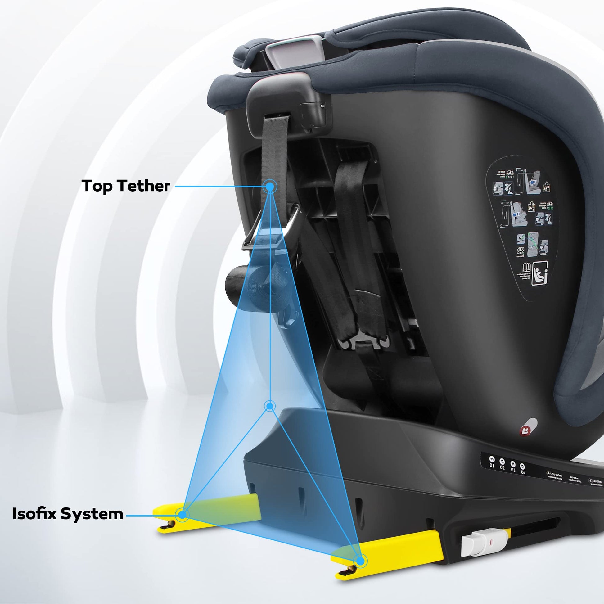- Müheloses Ein- und Aussteigen: Durch die 360-Drehung ist es ein Kinderspiel, Ihr Kind mit nur einer Hand in das Auto ein- und auszusteigen.